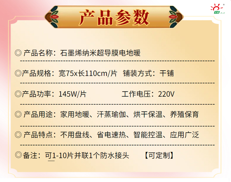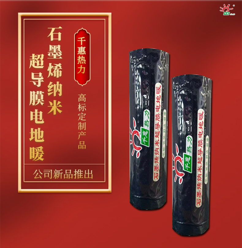 山东千惠热力科技有限公司2025年新品推出石墨烯超导膜电地暖,减少铺线工艺施工便捷,一人即可铺设。石墨烯超导膜通电升温快,智能控温,灵活采暖便捷。可根据采暖需求进行灵活性控温。